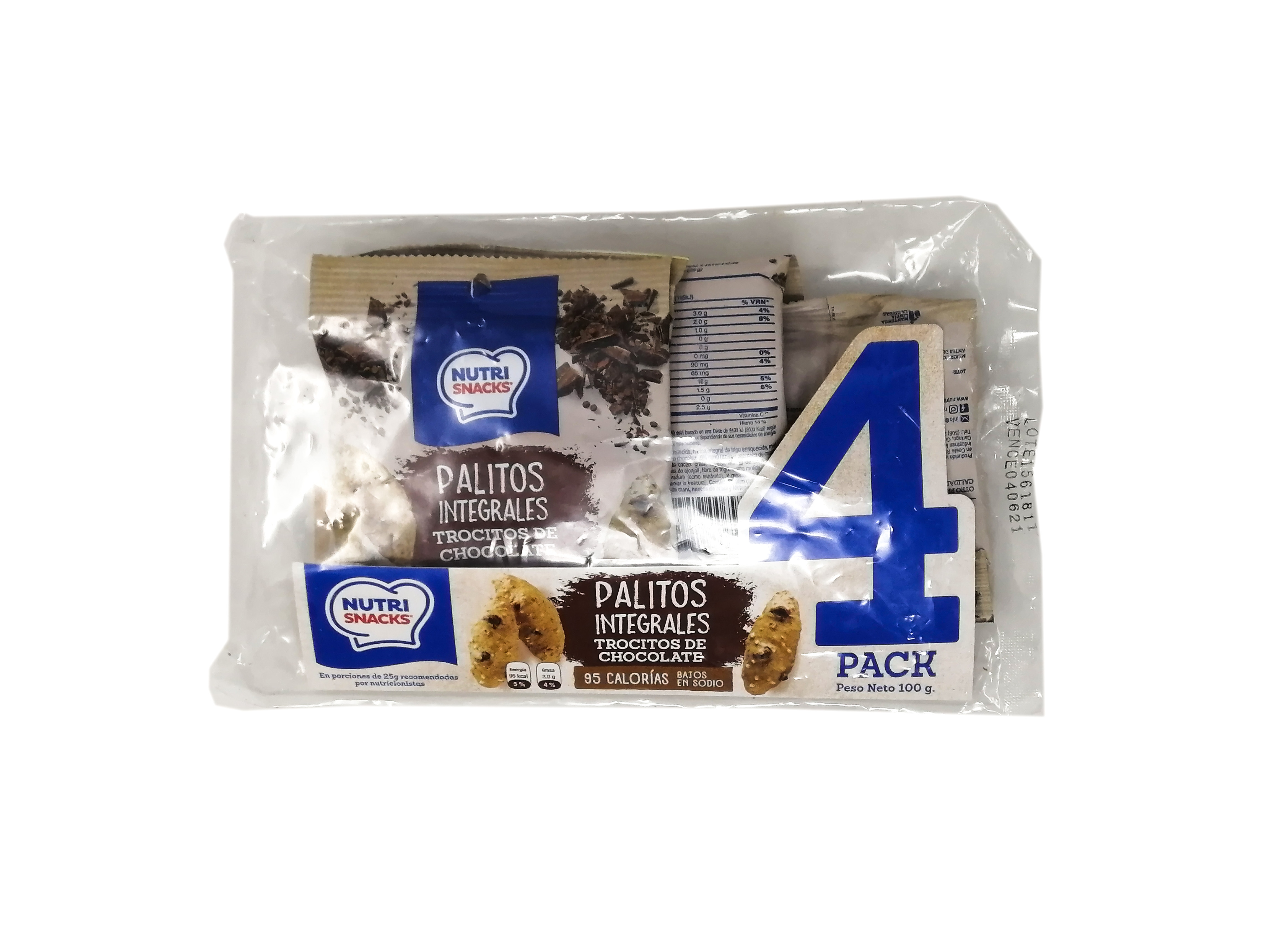 PALITOS INTEGRALES NUTRI SNACKS CON TROCITOS DE CHOCOLATE 100 g