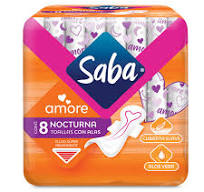 TOALLAS FEMENINAS SABA AMORE NOCTURNA CON ALAS 8 UND 8.00 UND