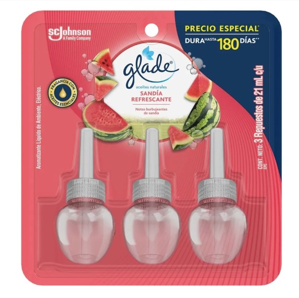 REPUESTO AROMATIZANTE GLADE SANDÍA REFRESCANTE 3 UND 21 ML